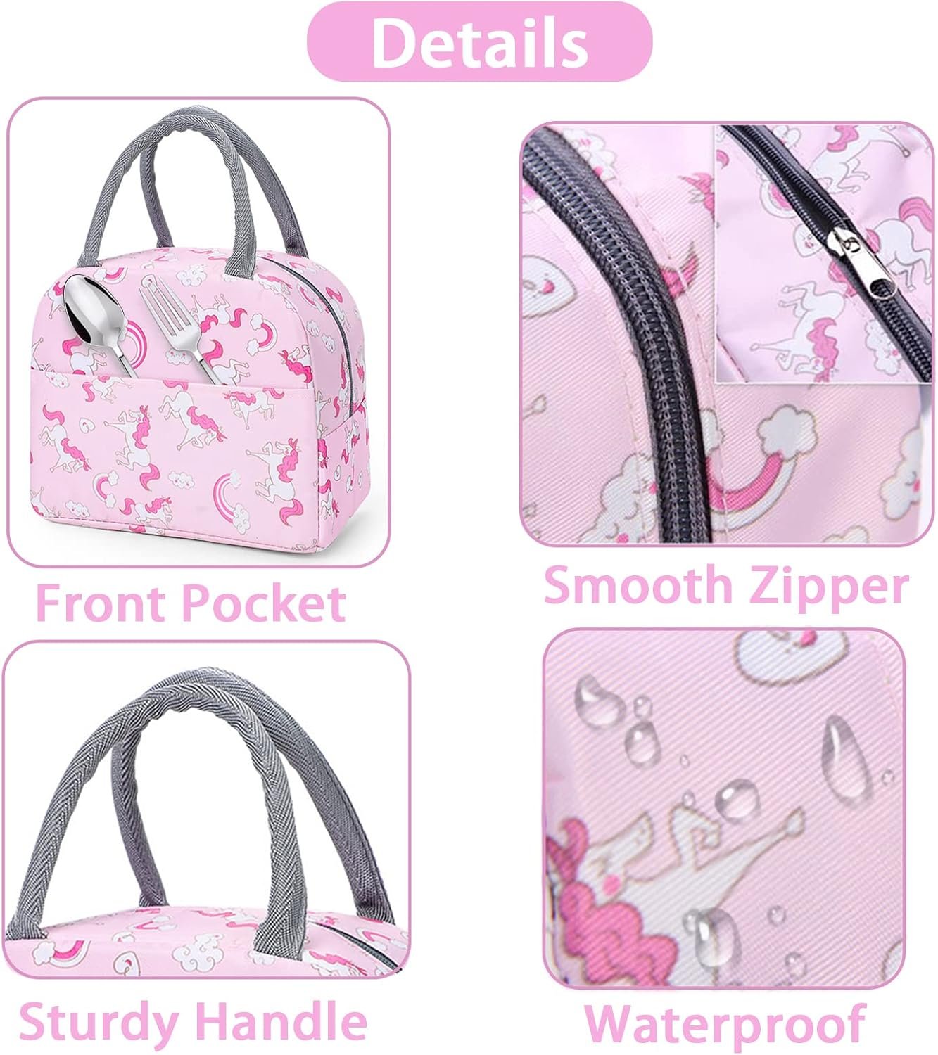 - Good Design Makes Life More Convenient : Large opening and zipper design, convenient to put and take out lunch boxes, snacks or drinks. If you accidentally sprinkle the sauce in the bag, just wipe it with a damp cloth or napkin, and you can clean it quickly.