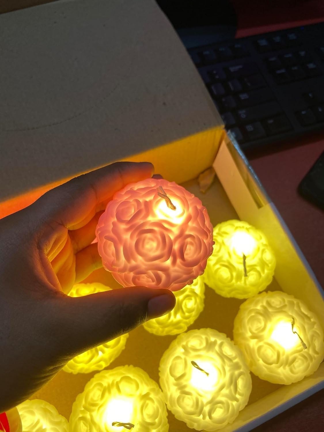 - HANDCRAFTED DESIGN: Beautiful spherical candle adorned with intricately detailed rose patterns, creating an elegant and romantic ambiance