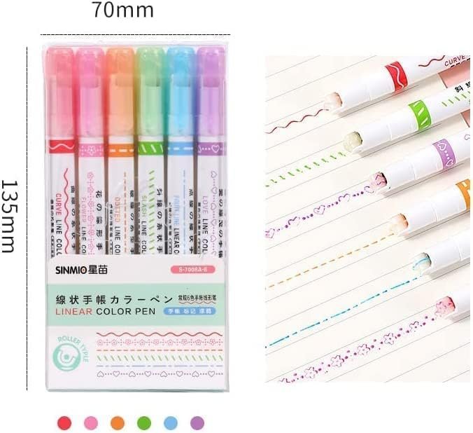 - Curve Highlighter Pen Set: Smilevol dual tip pens with 6 different curve shapes, smilevol linear color pens, colorful curve highlighter pen set, colored writing markers, for writing, drawing