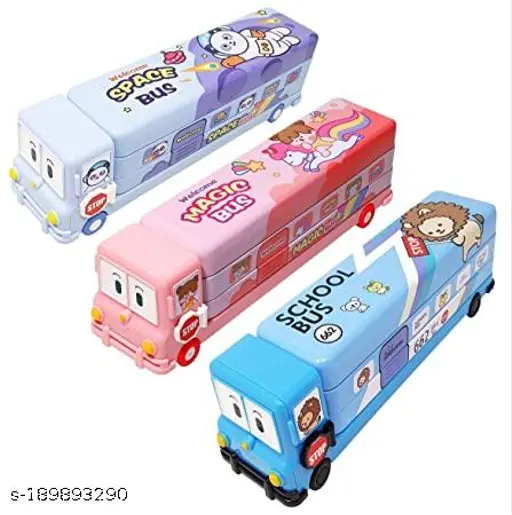 - MOVING BUS: This Movable Bus Shaped Multi Layer Metal Pencil Box Provides Better Safeguarding To All Personal And Valuable Items With A Reliable Lock System