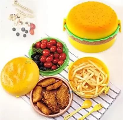 - KIDS GET ATTRACTED WITH BURGER LUNCH BOX WHICH HELPS IN BETTER EATING – The design of this cute little burger lunch box is so attractive that kids really love them and end up eating all lunch from their tiffin box. If you are looking for school lunch box for boys and girls then this lunch box is perfect